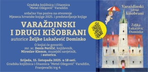 Gradska knjižnica i čitaonica "Metel Ožegović" Varaždin srdačno Vas poziva na Otvorenje Mjeseca hrvatske knjige 2025. i predstavljanje knjige Varaždinski i drugi kišobrani autorice Željke Lukačević Dominko. O knjizi će govoriti: mr. sc. Denis Peričić, književnik, Miroslav Klemm, muzejski savjetnik i autorica. Srijeda, 15. listopada 2025. u 18 sati, u Gradskoj knjižnici i čitaonici "Metel Ožegović" Varaždin, Franjevački trg 4.