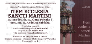 Gradska knjižnica i čitaonica "Metel Ožegović" Varaždin srdačno Vas poziva na predstavljanje knjige Item ecclesia sancti Martini autora doc. dr. sc. Alena Pajtaka i preč. mr. sc. Anđelka Košćaka. O knjizi će govoriti Varaždinski biskup mons. Bože Radoš, izv. prof. dr. sc. Ružica Vuk, viša kustosica Jelena Rančić i autori. Četvrtak, 12. veljače 2026. u 18 sati u Gradskoj knjižnici Varaždin, Franjevački trg 4.