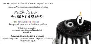 Gradska knjižnica i čitaonica "Metel Ožegović" Varaždin srdačno Vas poziva na predstavljanje knjige Mi se ne grlimo autorice Nastje Kulović. O knjizi će govoriti moderatorica Nataša Štambuk i autorica. Četvrtak, 19. ožujka 2026. u 18 sati u Gradskoj knjižnici i čitaonici "Metel Ožegović" Varaždin, Franjevački trg 4.